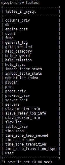 二、切換成 mysql 數(shù)據庫,使用(yòng)↔>命令 use mysql;
